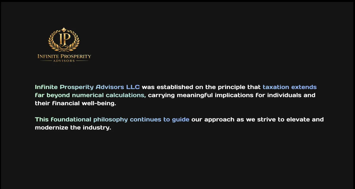 At Infinite Prosperity Advisors LLC, we are committed to helping individuals, families, and business owners achieve financial clarity, confidence, and long-term success. Specializing in tax preparation and strategic financial guidance, our mission is simple: to provide accurate, reliable, and results-driven services that put our clients in a stronger financial position year after year.