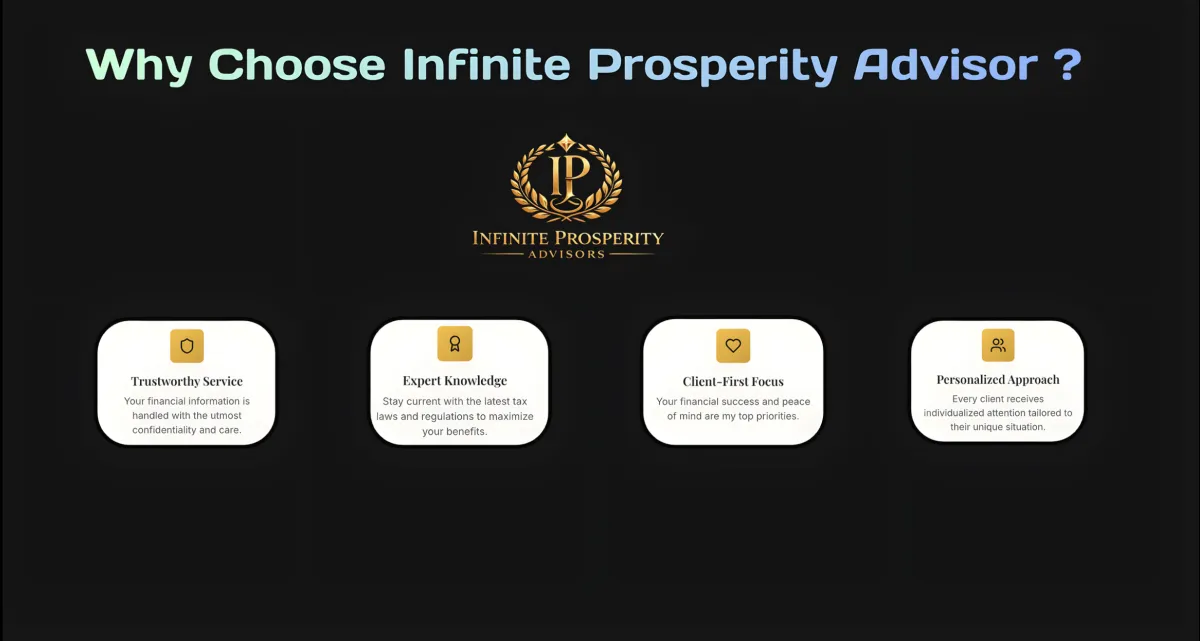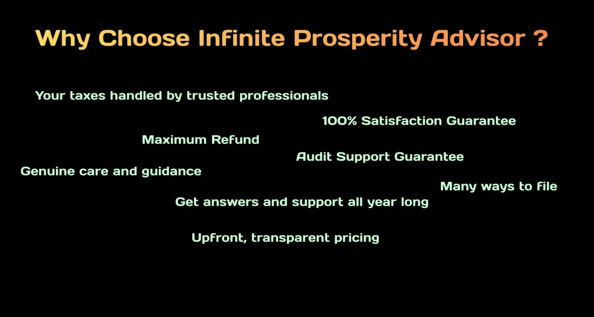 With a focus on professionalism, efficiency, and year-round support, Infinite Prosperity Advisors LLC is here to guide you every step of the way—from preparation to planning and beyond.