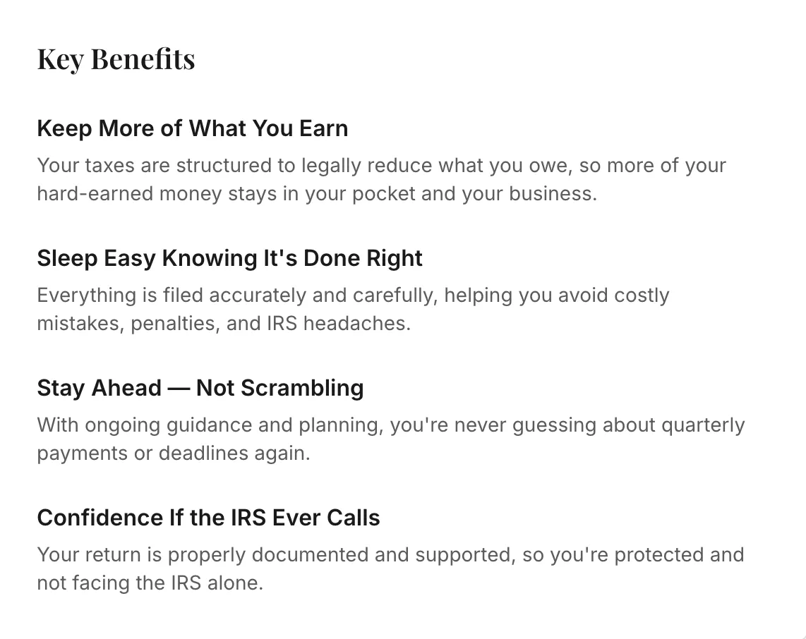 Keep more of what you earn, avoid costly mistakes, and stop stressing about self-employment taxes.